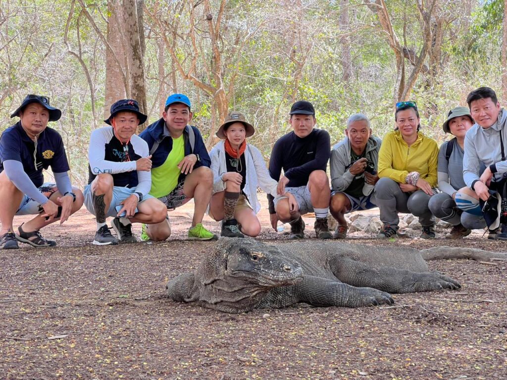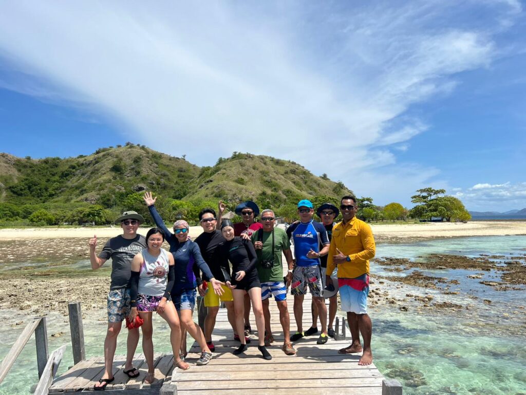 Di atas puncak salah satu bukit di area Bukit Cinta, tamu istimewa Komodo Trekker – para pendaki dari Malaysia mengucapkan